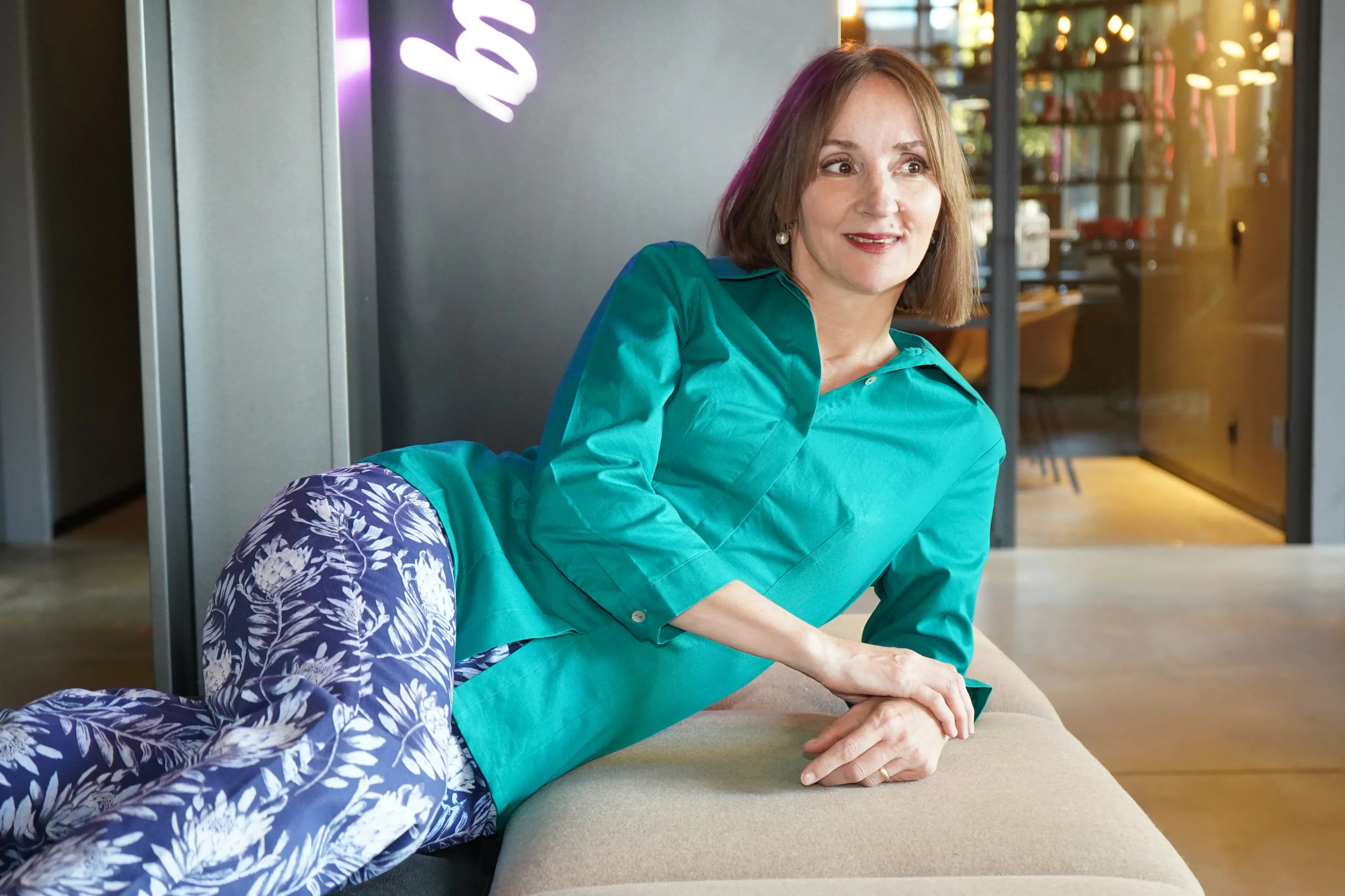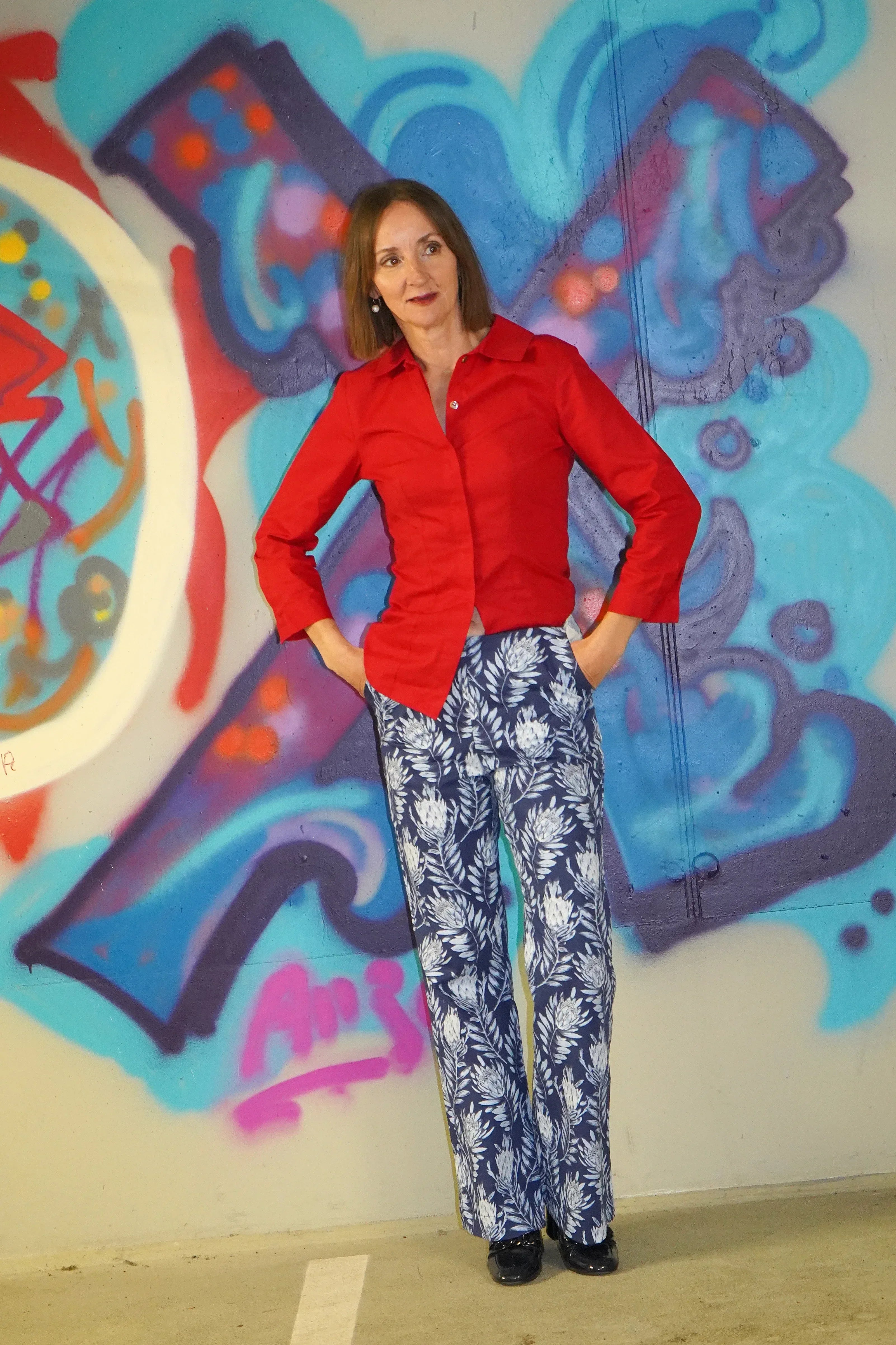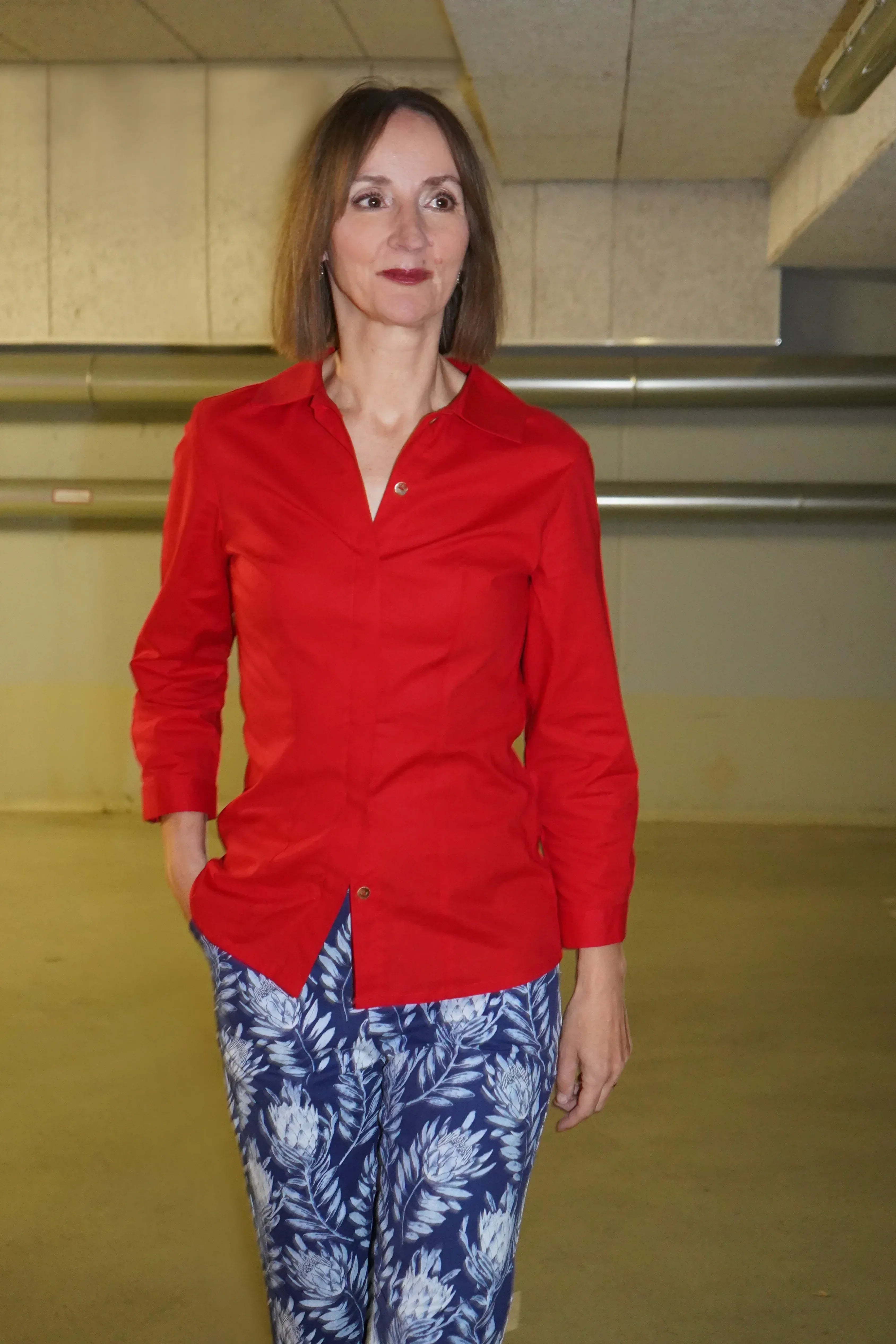 Immer im Gespräch bleiben. Stylisch ist die Bluse allemal, die hochgeschlossen getragen werden kann. Am besten mit einem couturigen Bleistiftrock oder auf einer Hüfthose oder was ich grad sehr gerne trage, einfach auf die Jeans. Sabina trägt die Größe 36.