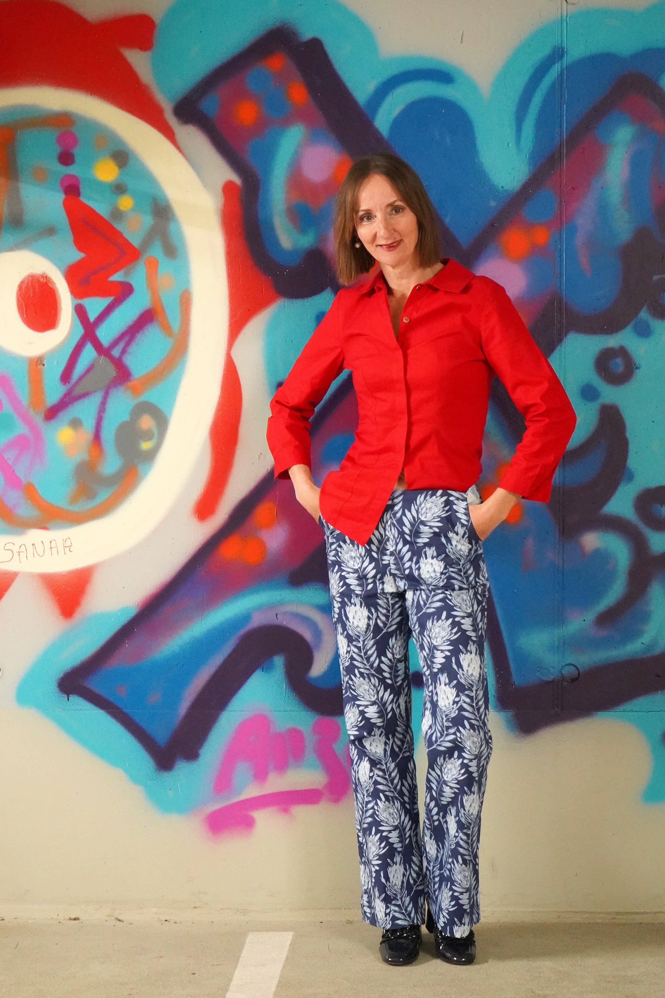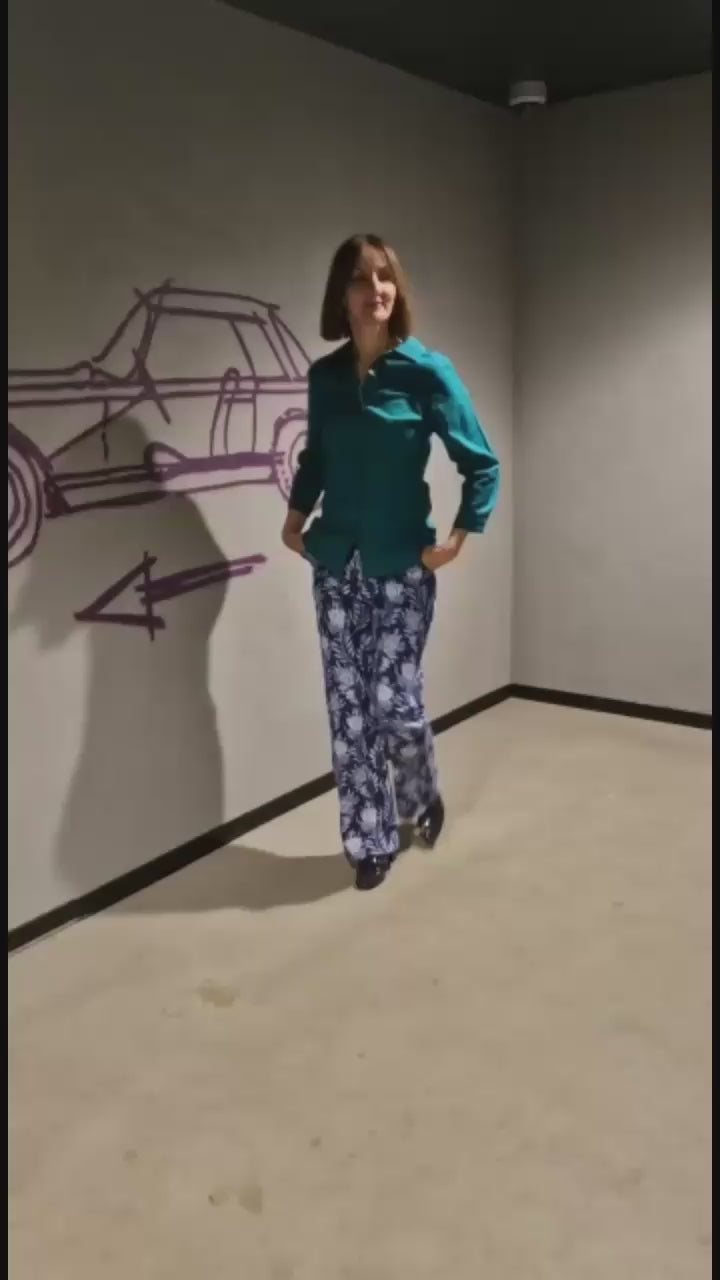 Die Hüfthose mit weitem Schlag, die macht Beine. Obenherum sitzt sie knackig und bequem. Die Seitentaschen dürfen nicht fehlen, zudem ist der Reißverschluss hinten wo er sich besser an Dich schmiegen kann. An kühlen Tagen sehen Rolli oder ein Longshirt und schicke Loafers gut aus. Das weite Bein lockert jeden Look auf und steht so Frauen mit kräftigen Beinen.