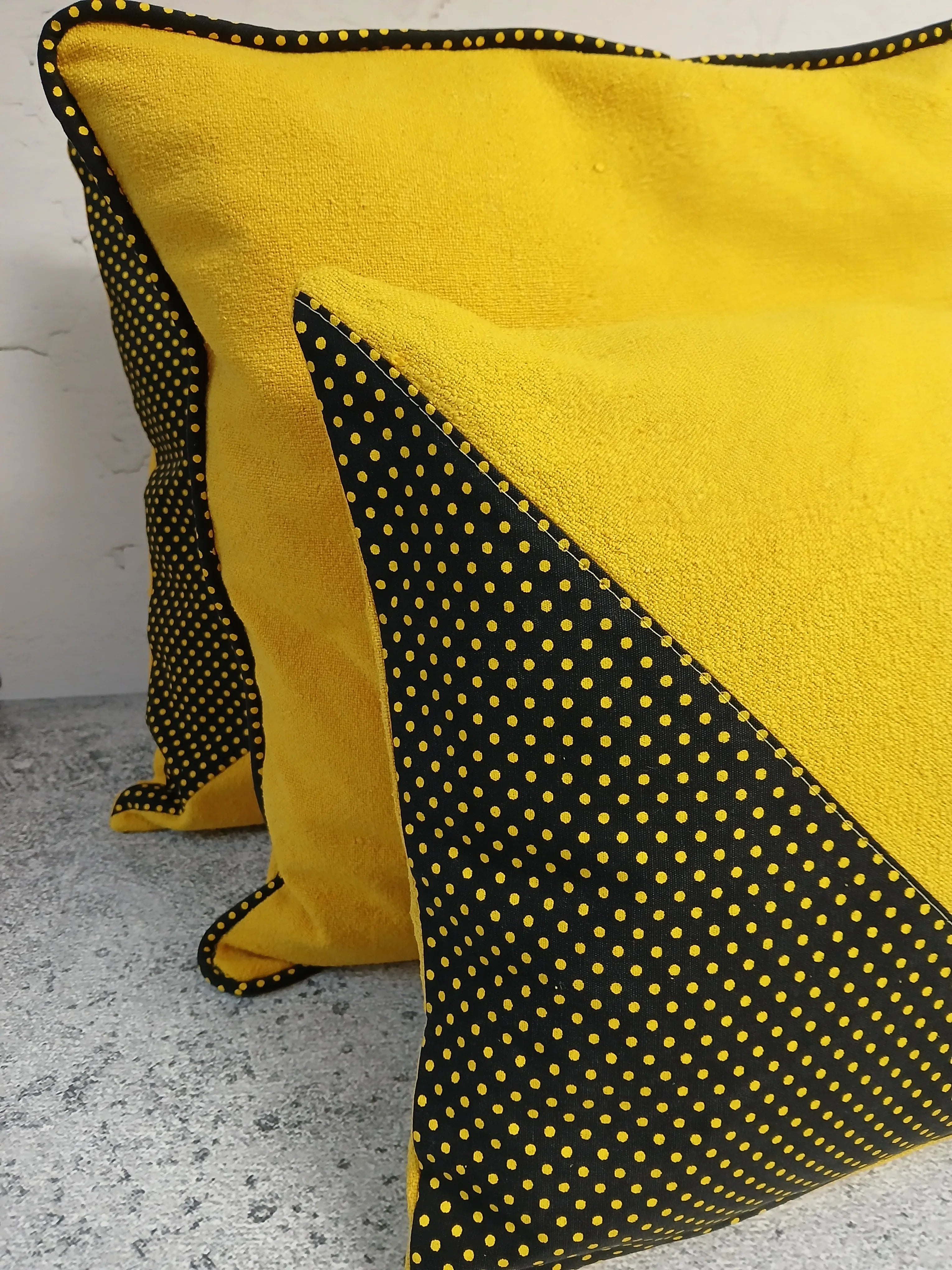 inge mit der Kissenparade in Gelb und in Quadrat frischen Schwung in deine Einrichtung. Dieses liebevoll zusammengestellte Set vereint mehrere handgemachte Kissenbezüge in warmen Gelbtönen mit abwechslungsreichen Mustern – inspiriert von südafrikanischen Stoffen, bunt und voller Persönlichkeit. Die Kombination aus klassischen Punkten, kräftigen Farben und hochwertigem Baumwollstoff macht das Set zu einem echten Blickfang auf Sofa, Sessel oder Bett.