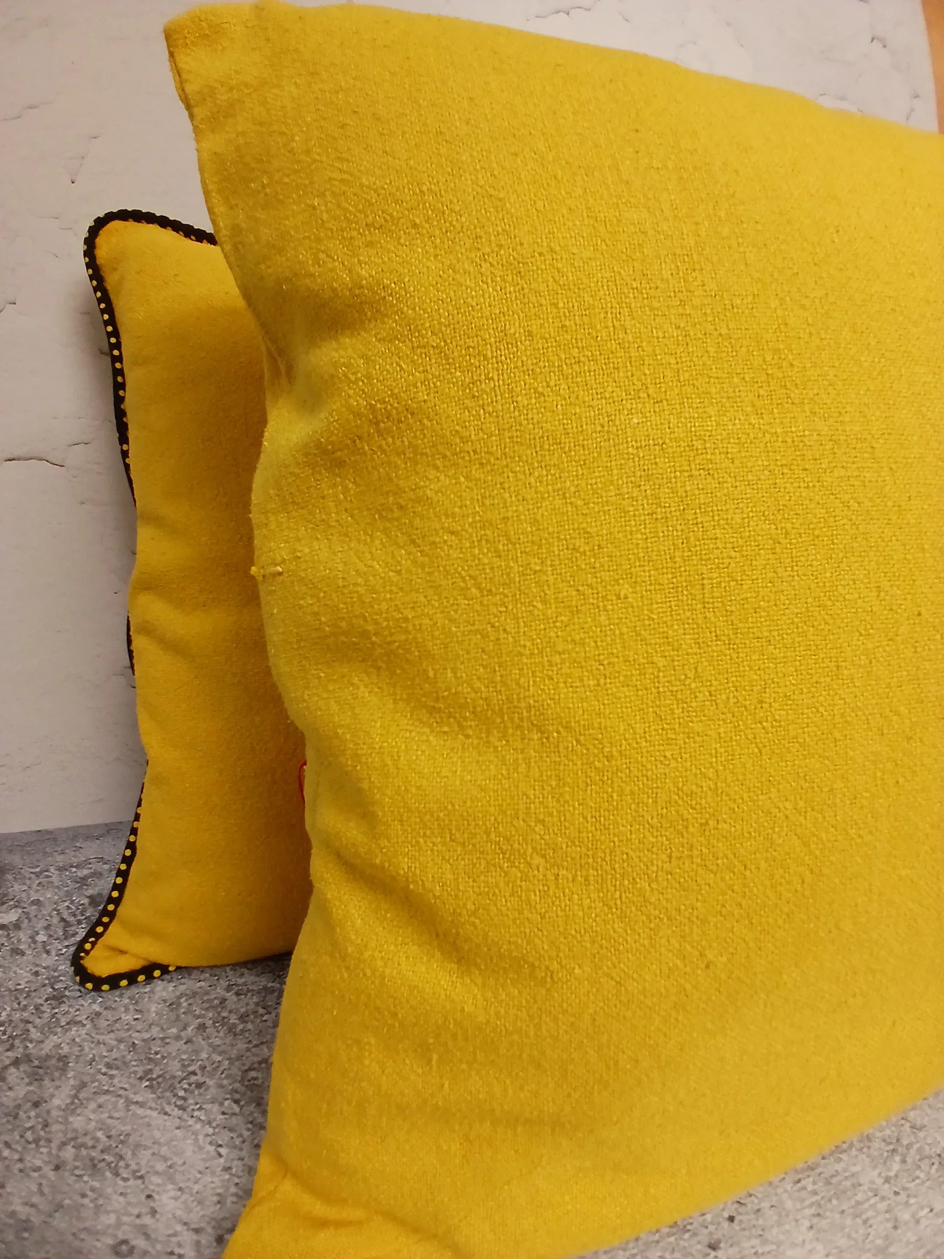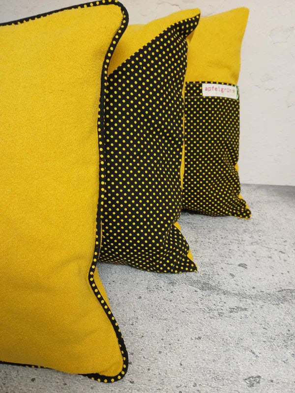 Material & Pflege: Gelbes Kissen: upgecycelte 100% Baumwolle & daGama Textiles & Maschinenwäsche bei 30°C, nicht im Trockner trocknen